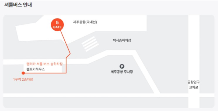 셔틀버스 타는 곳: 제주공항에서 GATE 5번 출구로 나오면 '렌터카 하우스' 안내 표지에 따라 이동하여 셔틀버스 타고 제주 지점으로 이동.